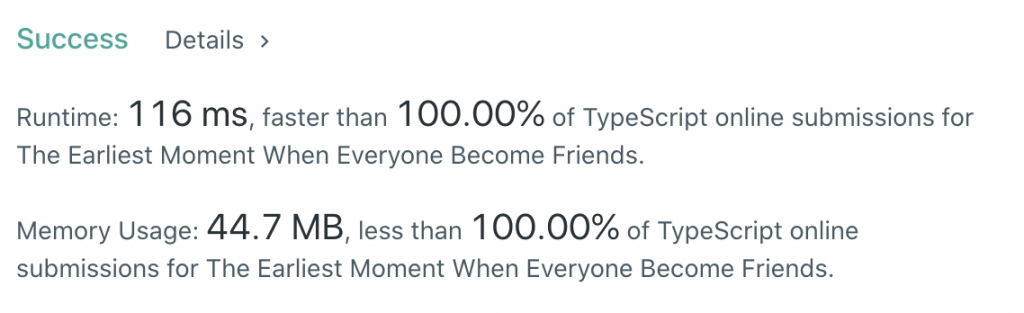 Leetcode 1101: The Earliest Moment When Everyone Become Friends solution, TypeScript