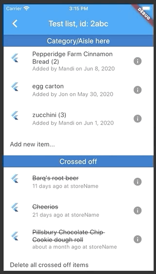 (For now, tapping the item name itself will cross the item off the list. I don’t know if I like this particular UX – I keep tapping the item name hoping to edit it, only to remember I need to tap the “info” icon to edit it. This is good enough for now, though.)