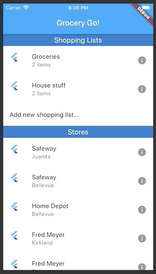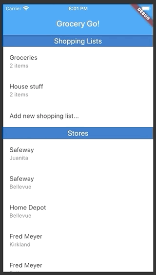 In Part 2 we left off with a main screen that displays some mock data and can be scrolled, but nothing really goes anywhere or does anything yet. Making the list items interactive is the next step. The ListTile class already supports an onTap property, so adding that is easy.