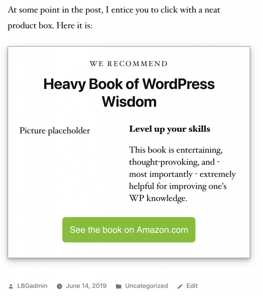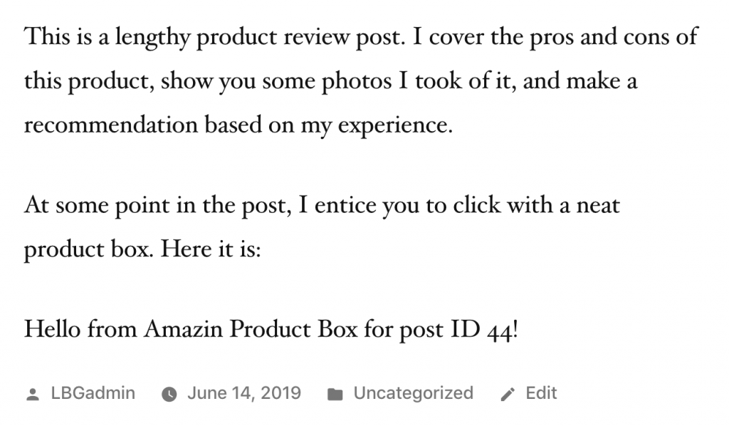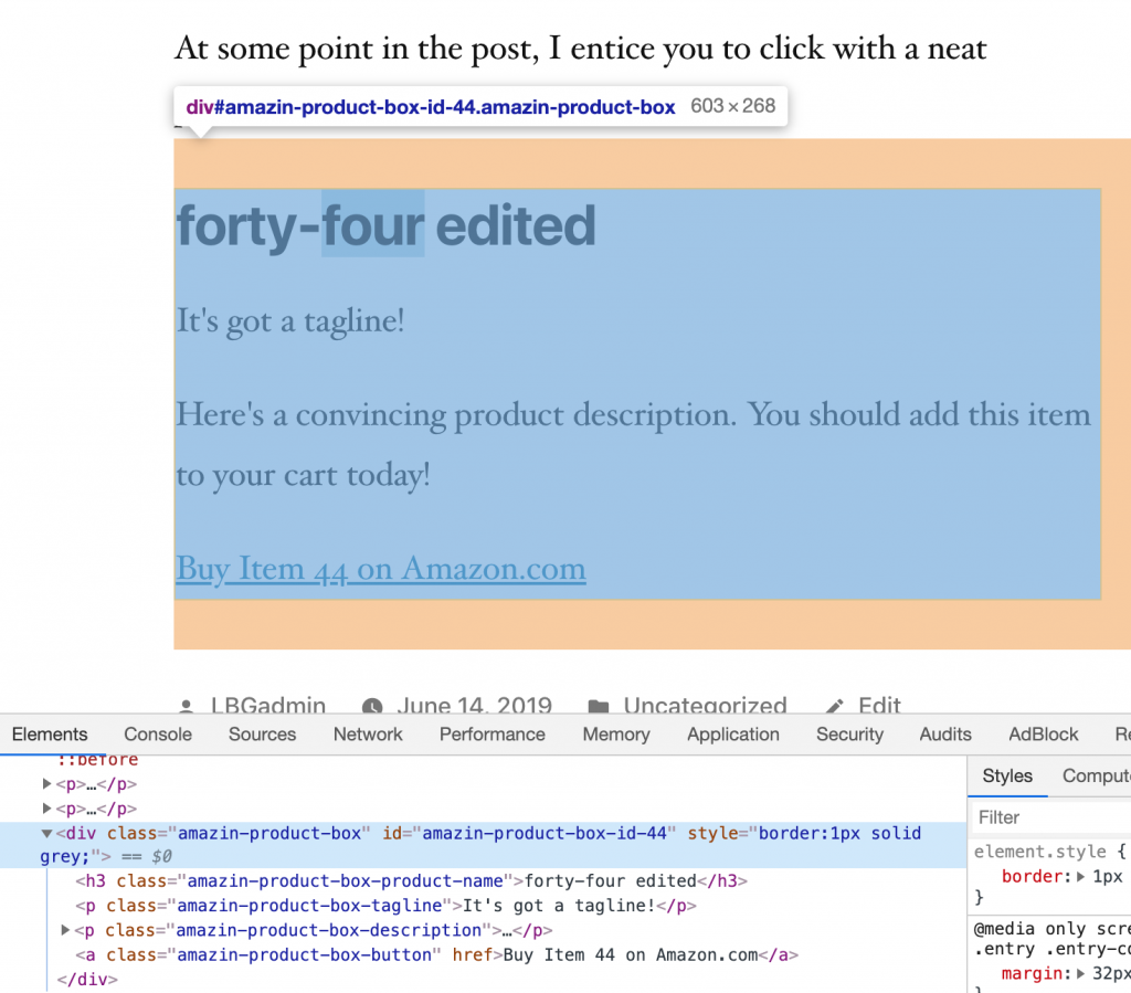 Yay, the bare-bones backend is working! Continue on with Part 2 where I add the ability to display a Product Box in an actual post.