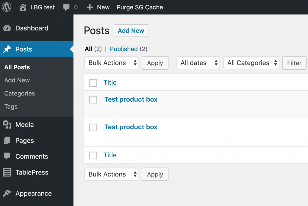 I deleted all the “post” type product boxes to clean up the Posts screen. We’re gonna be amazin_product_boxes from here on out!