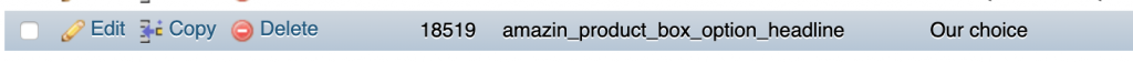 • Delete the plugin’s setting (“amazin_product_box_option_headline”) from _options